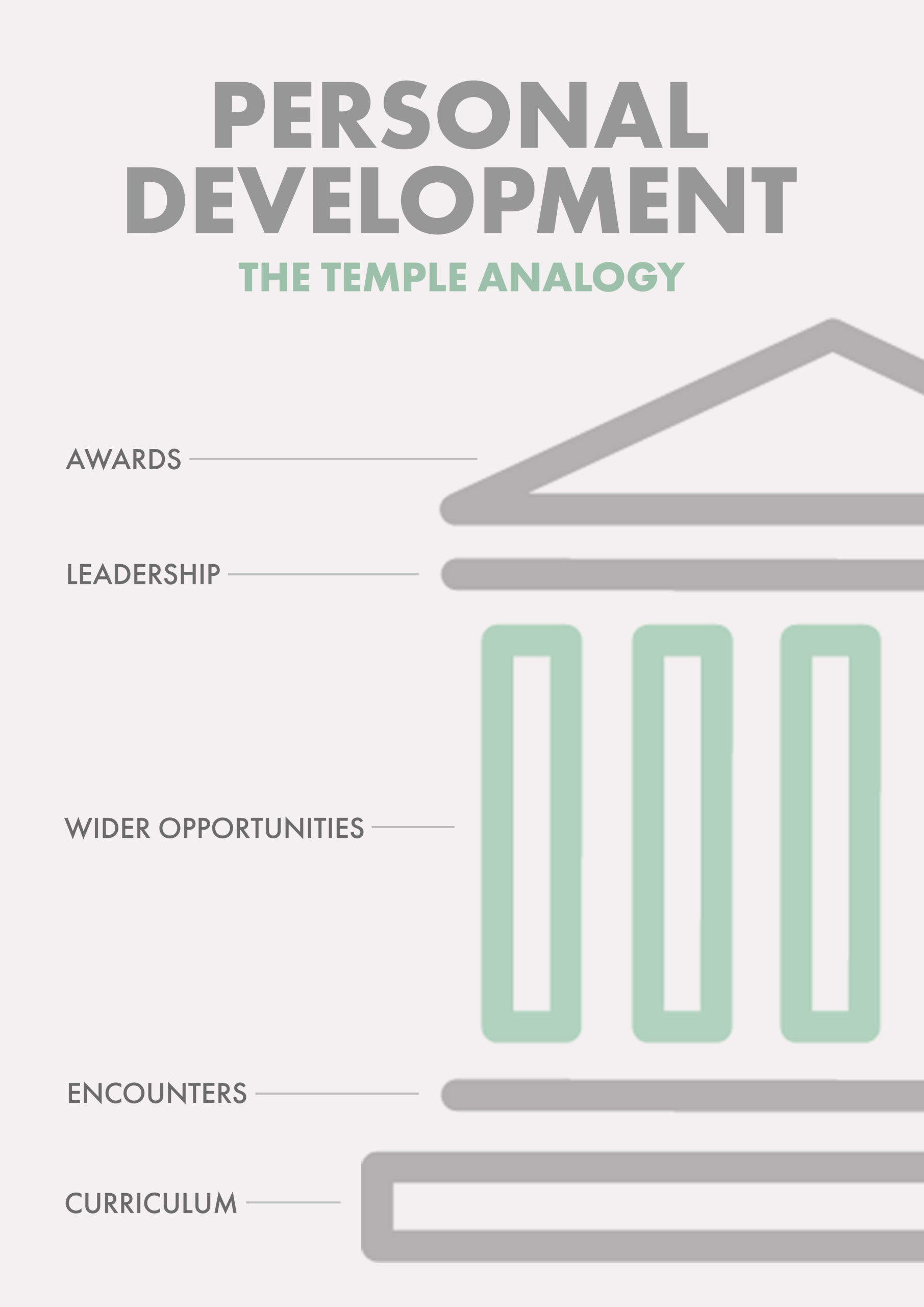 At the pinnacle, the Pantheon signifies the awards we present, which celebrate the dedication and achievements of our students in their personal development endeavours.
